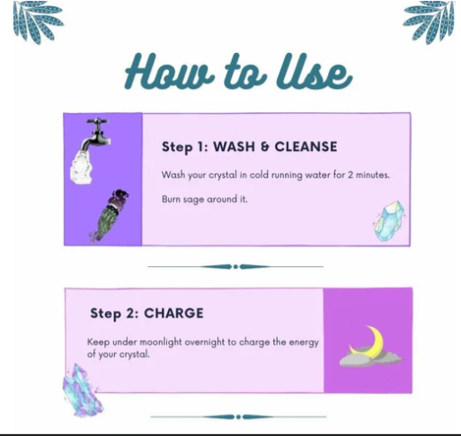 - Remember to keep cleansing and charging your crystals every two to four weeks.