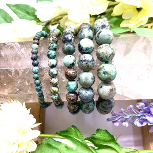 African Turquoise Bracelet: A stone of transformation and emotional healing, helping release past negativity, embrace change, and reduce conflict—cleanse regularly, wear with intention on your non-dominant hand, and expect results in 21–48 days.